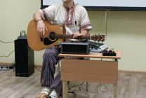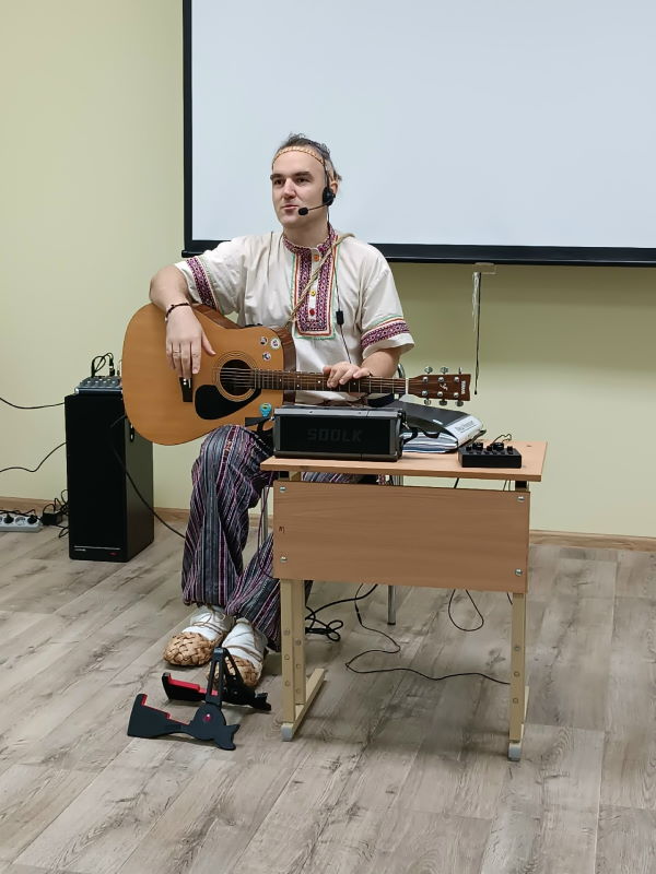 Зал был полон – каждый ряд, каждый уголок наполнился вниманием, улыбками и искренними эмоциями. Под аккомпанемент гитары, звучавшей прямо из сердца, Миша исполнил свои трогательные песни, в которых – и свет, и грусть, и надежда.