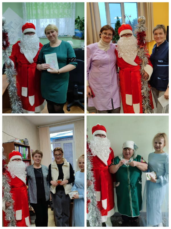 Дед Мороз, Снегурочка и вся новогодняя команда лично вручили тёплые, яркие, с доброй поздравительной «начинкой» послания адресатам.