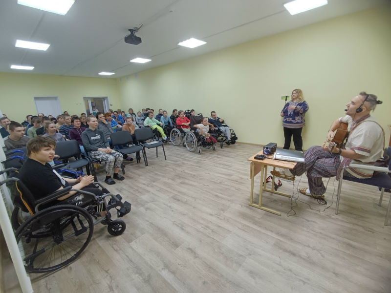 Зал был полон – каждый ряд, каждый уголок наполнился вниманием, улыбками и искренними эмоциями. Под аккомпанемент гитары, звучавшей прямо из сердца, Миша исполнил свои трогательные песни, в которых – и свет, и грусть, и надежда.
