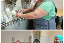 Каждый день они убирают десятки помещений и прилегающую территорию, зимой расчищают дорожки от снега, летом – поддерживают порядок в зонах отдыха и прогулок. В прачечной стирают и гладят бельё, в швейной ремонтируют и подшивают одежду, чтобы каждый ребёнок и взрослый был аккуратно одет. Парикмахер бережно и терпеливо стрижёт даже самых тревожных воспитанников. Буфетчицы накрывают готовую пищу - аккуратно, по расписанию, с учетом пожеланий и особенностей питания детей и взрослых, следят за чистотой: всё сияет – от кружек до подносов.